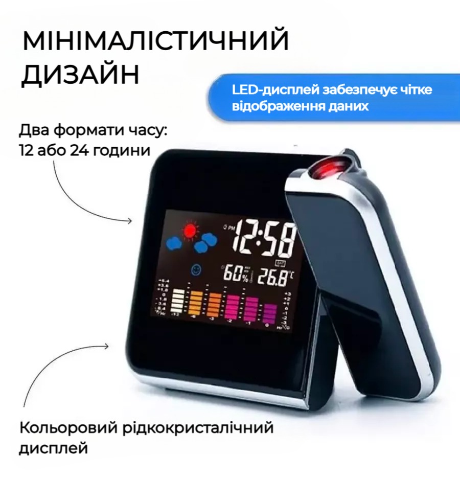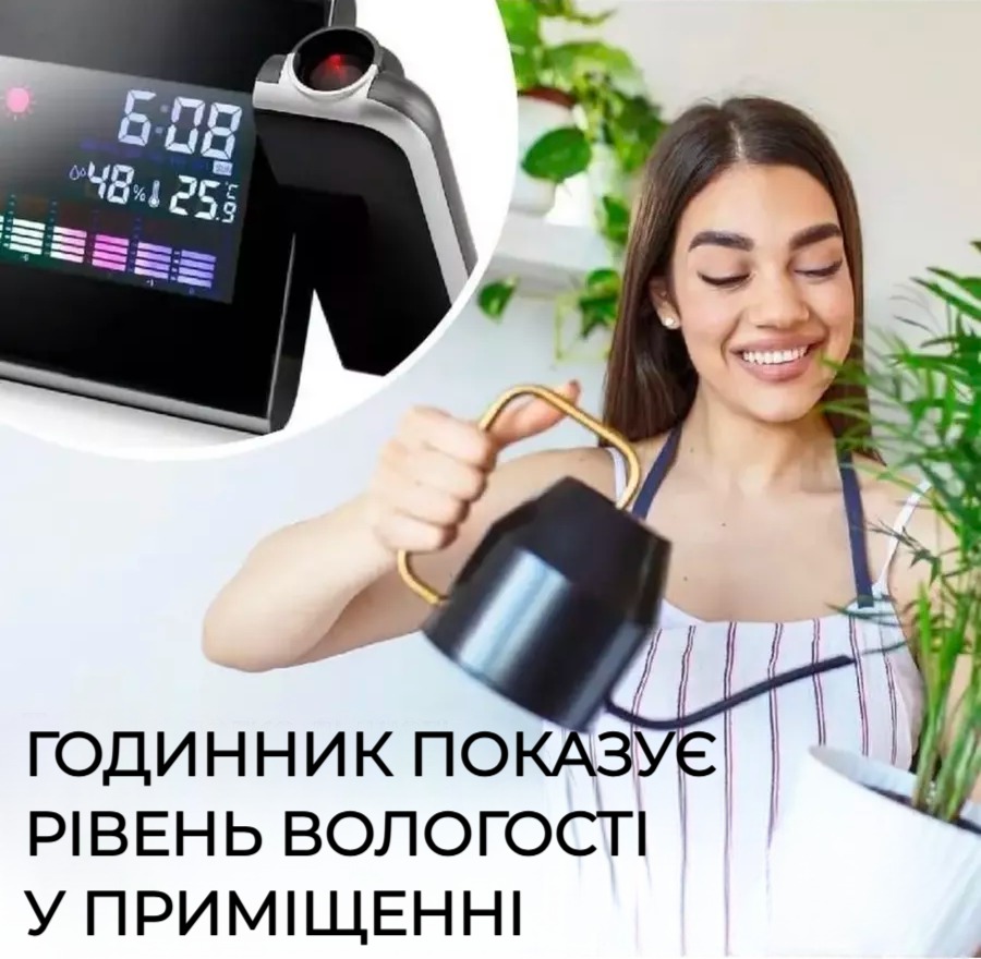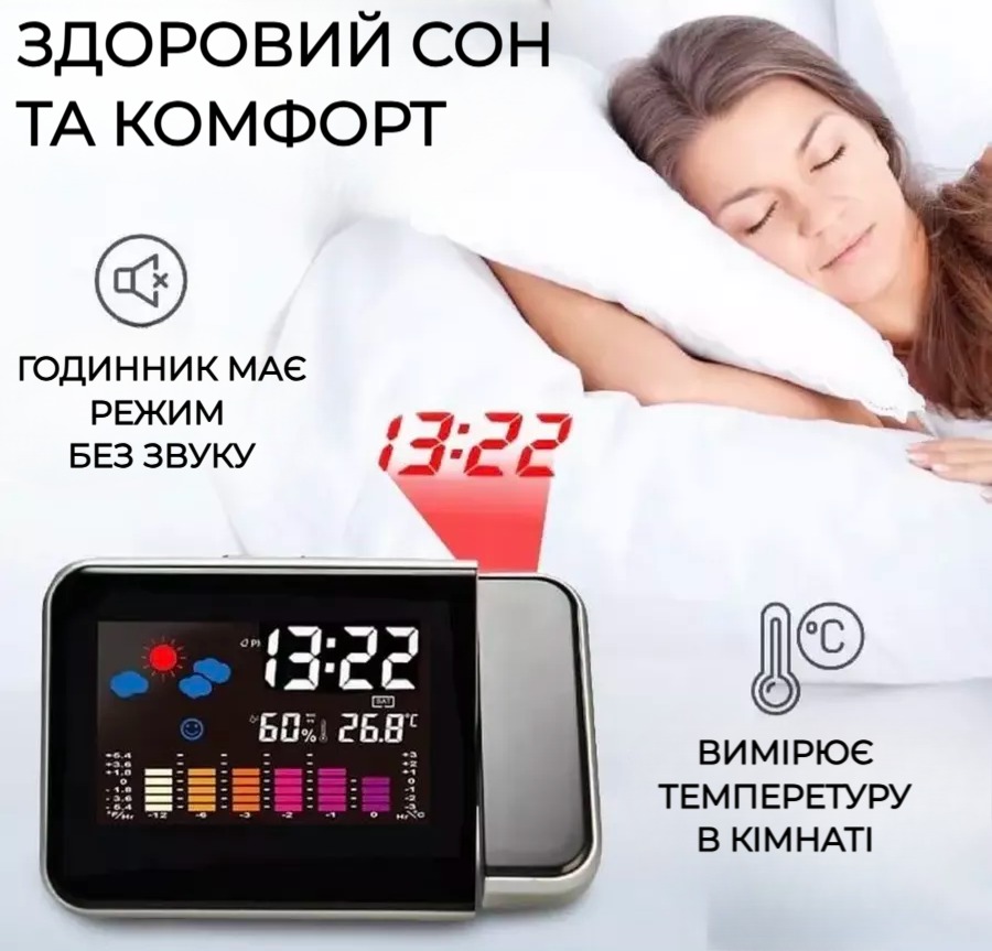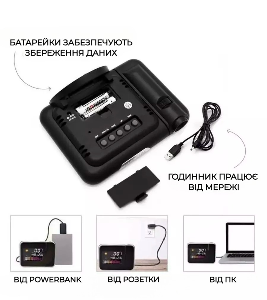 Особливою перевагою є функція проекції часу на стелю. Ви завжди зможете бачити поточний час без потреби дивитися на екран годинника.